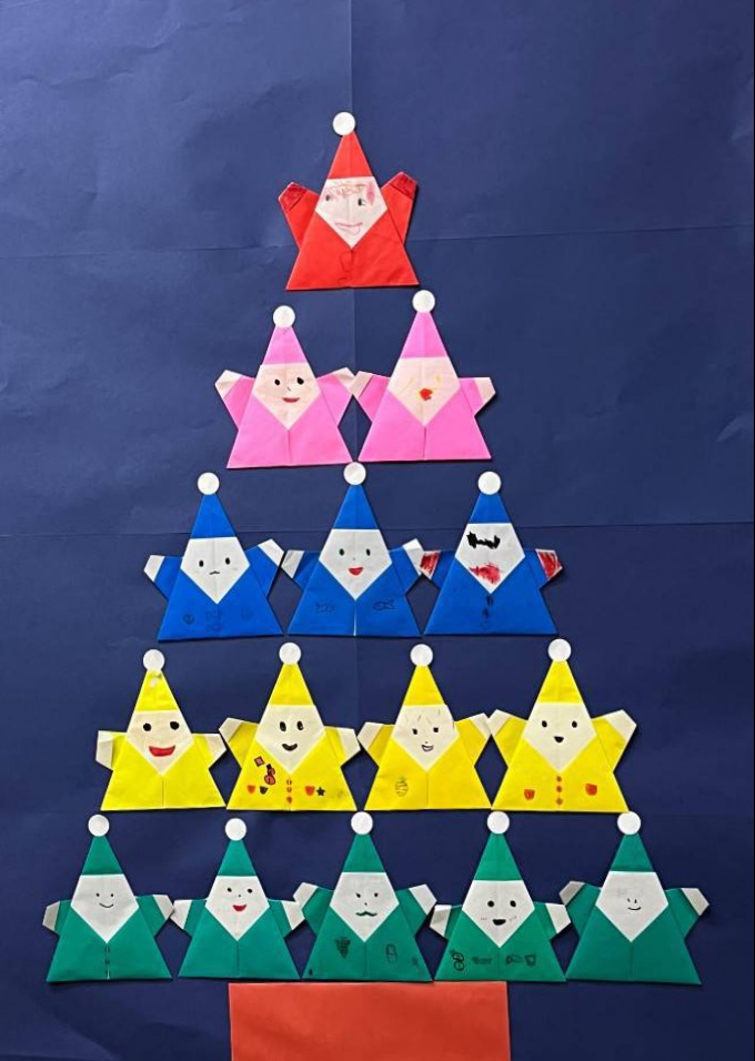 ・分級活動:サンタクロース・ツリーを作り、午後は園庭でおにごっこをしました。